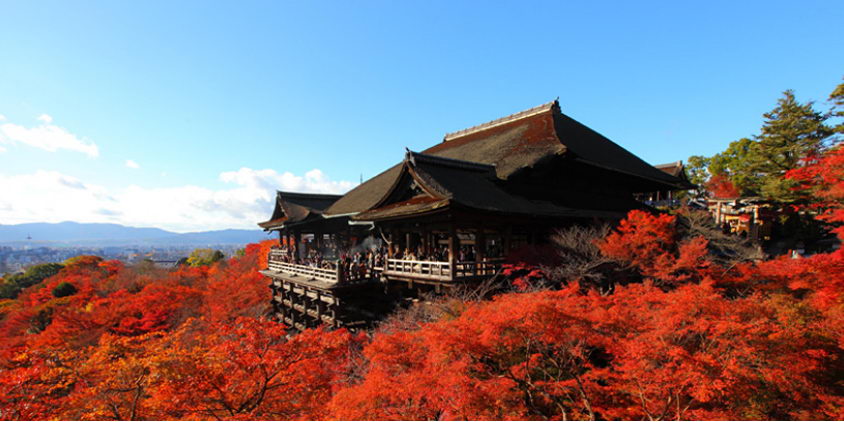 本堂前悬空的清水舞台是日本国宝级文物,四周绿树环抱,春季时樱花烂漫,是京都的赏樱名所之一,秋季时红枫飒爽,又是赏枫胜地。清水寺的茶艺名列京都之首。